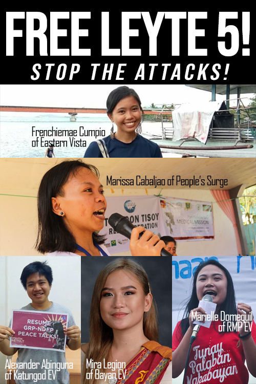 “We demand the immediate release of the Leyte 5 and a stop to these attacks that target activists and legitimate people’s organizations advocating genuine social reforms, democratic rights, and the general welfare of the Filipino masses,” Mariano added.