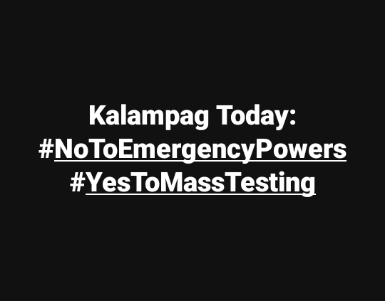 “These proposals are completely unnecessary in facing the COVID-19 pandemic. What the people need are the correct and timely allocation of sufficient funds for healthcare measures such as building the capacity to conduct free mass testing and providing much-needed socio-economic relief for the people,” Ramos insists. The peasant leader further points out that there are already tens of billions worth of funds available to the President and related national government agencies which can quickly be utilized for the health crisis, such as the Php12 billion President’s Contingency Fund, the Php16 billion Calamity Fund, and the Php6.8 billion Quick Response Fund of national agencies.