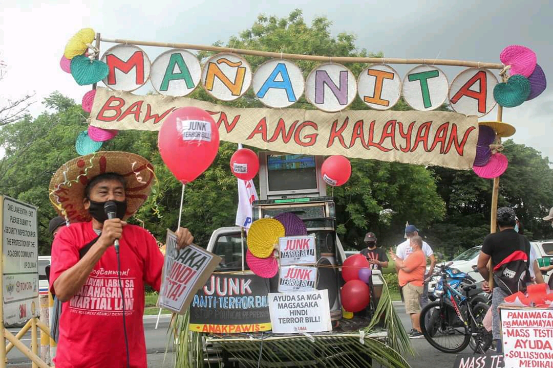 “We are exercising our inherent right to express and peaceably assemble. We have just reasons to oppose the Anti-Terror Bill and the government’s extreme negligence toward the plight of the people,” says Danilo Ramos, chairperson of Kilusang Magbubukid ng Pilipinas, one of the groups joining the Grand Mañanita today at the University of the Philippines in observance of the 122nd Philippine Independence Day. “We are safeguarding our remaining democratic rights and civil liberties. We will never surrender these rights to the government’s Terror Bill that is meant to impose Duterte’s open fascist rule.”
