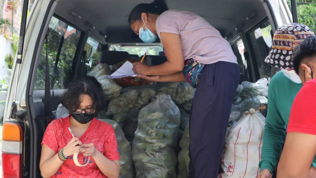 LOOK. Fresh harvest from San Jose Del Monte farmers out for delivery to pantries in Maginhawa St. Matatag St., UP Campus, Krus na Ligas, South Triangle, Laging Handa, Tomas Morato, Tatalon, Payatas, Batasan, Samson Road, Don Antonio, Sampaloc, Pasay City, and Makati.