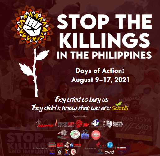 In remembering Kian, Carl, Kulot, Ka Randy, and Zara, we remember the thousands of victims of extrajudicial killings. We stand in solidarity with their families and seek accountability. In demanding justice, we ring our call to stop the killings in the Philippines and to end all the bloody campaigns and policies that have facilitated these murders. We call on international bodies, such as the ICC and the UN Human Rights Council, to conduct impartial and independent investigations into the human rights crisis in the country and to prosecute President Duterte and his allies for their cruel crimes against the Filipino people.