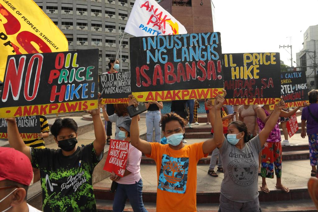 Farmers and transport sectors led by party-list Anakpawis are protesting the latest round of oil price hikes that resulted in the following increase effective today, March 1: Gasoline – P0.90-P1.00 per liter; Diesel – P0.70-P0.80 per liter; Kerosene – P0.70-P0.80 per liter; and Liquefied petroleum gas (LPG) – P10-P15 per kilo.