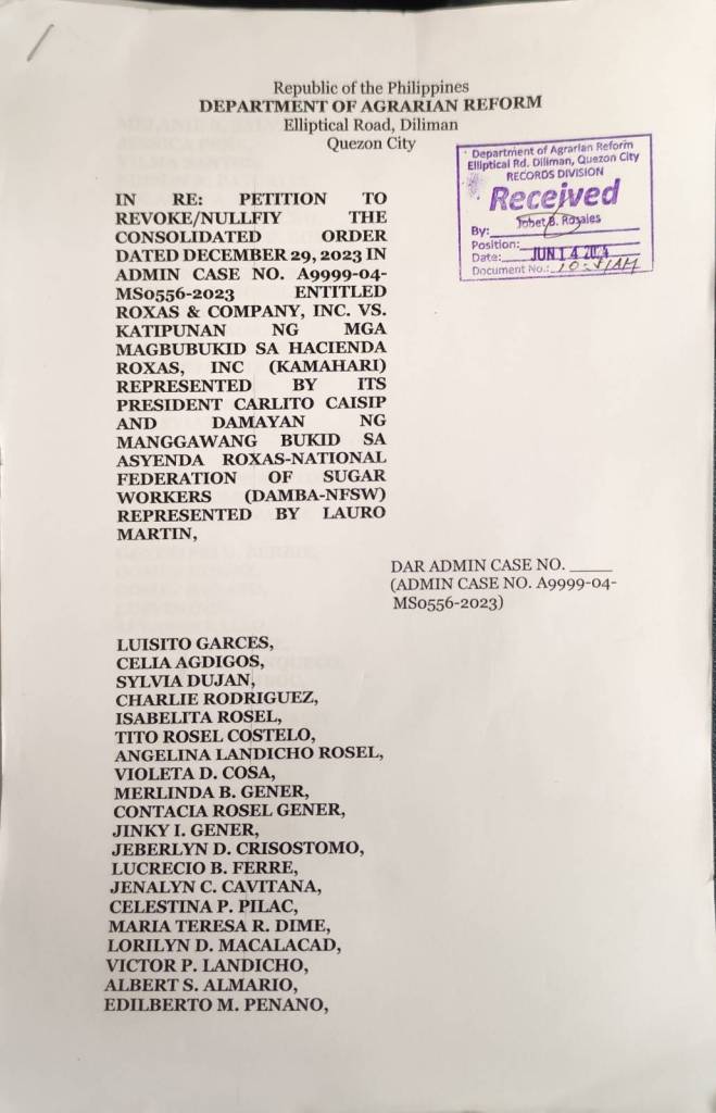 Farmers, agrarian reform beneficiaries (ARBs) and residents of several villages from Haciendas Palico, Banilad, and Kaylaway in Nasugbu, Batangas trooped to the Department of Agrarian Reform (DAR) this morning to file a Motion to Revoke the Compromise Agreement entered into by DAMMBA-NFSW and KAMAHARI with the Roxas and Company Inc (RCI).