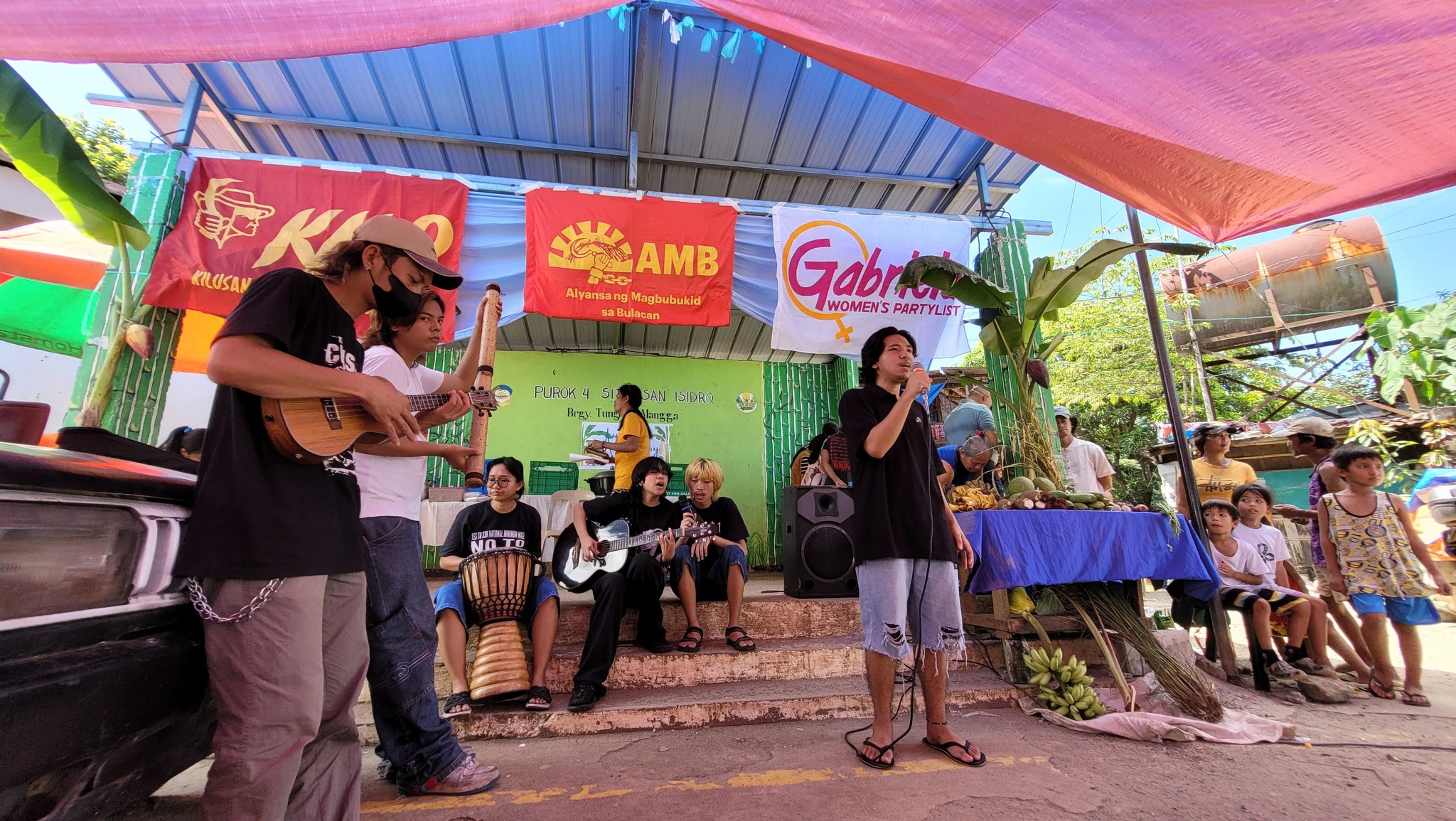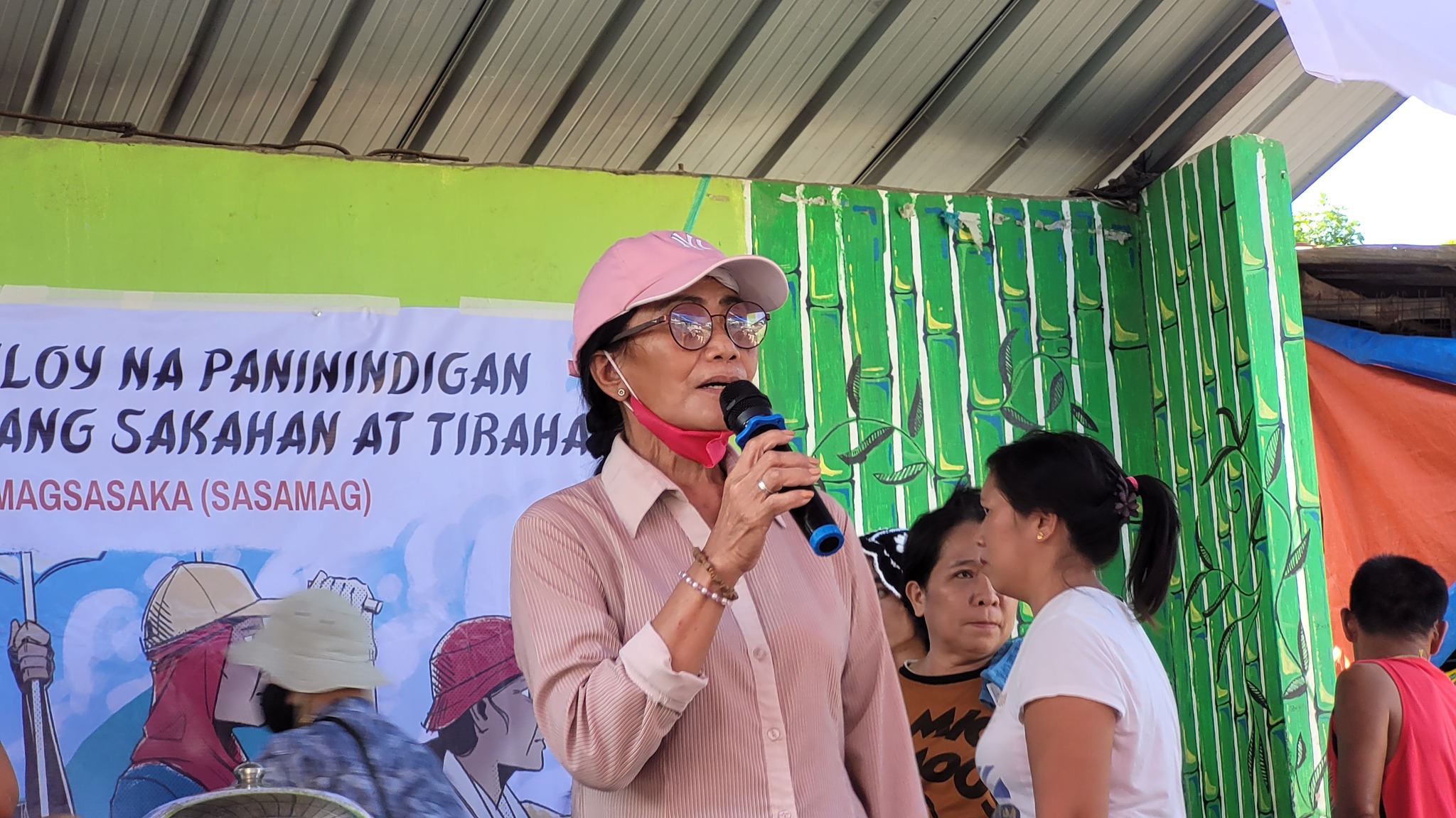 Mabuhay ang SASAMAG! Makibaka, huwag matakot! Militar sa kanayunan, palayasin! Tunay na Reporma sa Lupa, Ipaglaban!