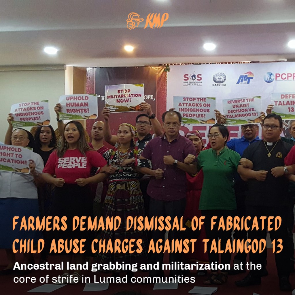 Today, various groups launched the Defend Talaingod 13 Alliance, calling for the immediate dismissal of fabricated child abuse charges against the so-called Talaingod 13. This campaign, supported by the Kilusang Magbubukid ng Pilipinas (KMP), highlights the ongoing struggle for ancestral land rights and the importance of defending territory in the Pantaron Mountain Range for the survival of Lumad communities.