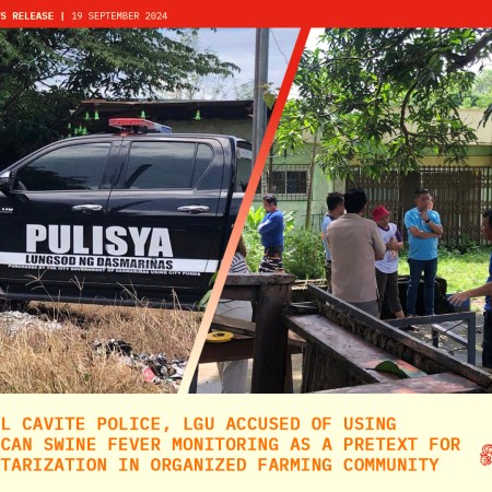 Local Cavite police, LGU accused of using African Swine Fever Monitoring as a pretext for militarization in organized farming community