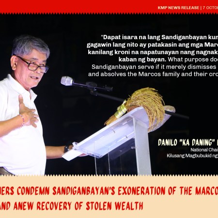 Farmers condemn Sandiganbayan’s exoneration of the Marcoses, demand anew recovery of stolen wealth